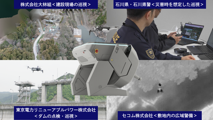 | 石川県・石川県警 <災害時を想定した被害状況確認、避難誘導> ドローンポートの社会基盤化に向けた実証に成功 | |