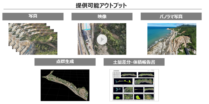| 成果 | ■迅速に現場状況を把握し、関係者へ情報共有することで、現場作業の効率化を実現 ■2024年 9月21日に発生した能登豪雨でも、3次元モデルを生成することで、迅速な現場の被害状況把握に活用 ■プレスリリース:https://kddi.smartdrone.co.jp/release/6920/ | ||||||||