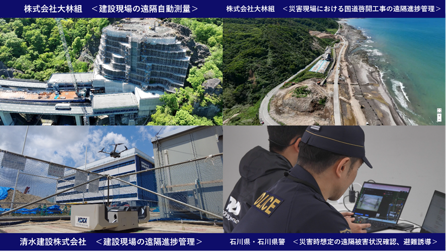 | 株式会社大林組 <国道啓開工事の遠隔進捗管理> 石川県輪島市の国道啓開工事で自動充電ポート付きドローンの遠隔運航で作業効率化を実現 | |||||||||